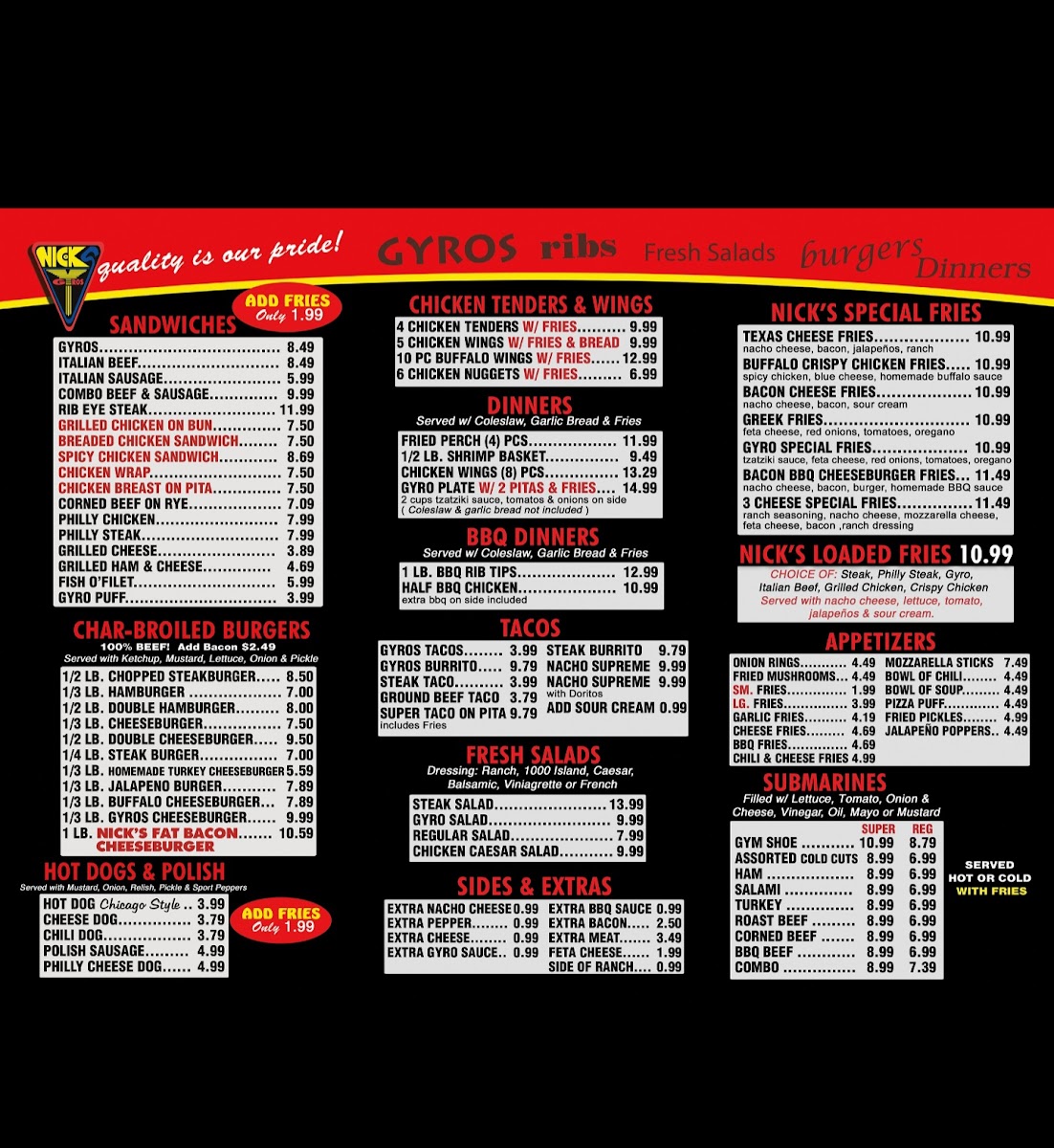 Nick's Gyros Chicago Heights Menu (2025 Update)